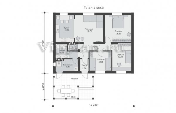 | Размеры дома: | 9.38м×12.38м |